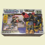 Notes: Black Zarak is a modified Scorponok, featuring a giant spear and a modified head piece. Released as part of the Japanese Masterforce cartoon, Black Zarak is the counterpart to the Grand Maximus and menacing in black, gold and red. The Energon repaint, Dark Scorponok, are a tribute to the original and as close as Black Zarak has come to invading North American toy shelves.